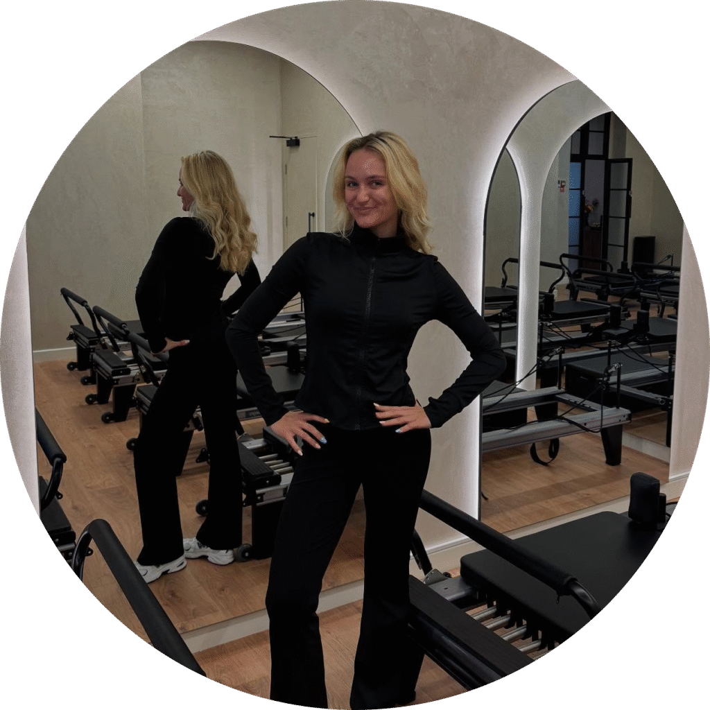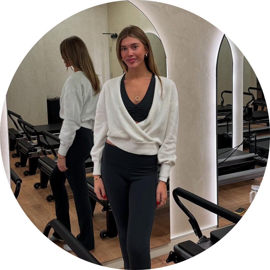 Certified in mat and reformer Pilates, Lily brings experience from teaching in Dubai and a passion for helping clients of all levels feel confident in movement.